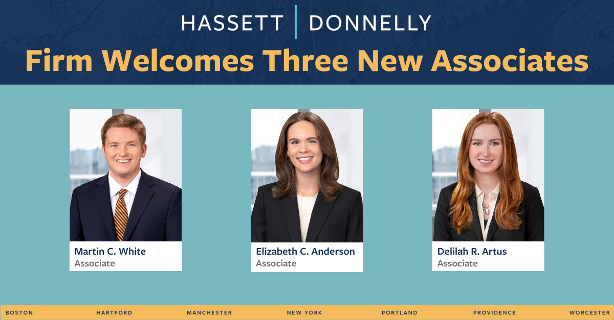 Hassett | Donnelly is pleased to announce the addition of three new associates to its Connecticut and Massachusetts offices.